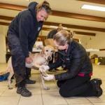 veterinari volontari sono arrivati al campo base del Comando degli Incidenti per aiutare i cani prima e dopo aver fiutato attraverso il fango denso, detriti tossici, e enormi massi nei siti della calamità. Dopo i loro lunghi turni, i cani vengono lavati. Poi i veterinari li esaminano e, quando necessario, puliscono le ferite, eseguono interventi chirurgici, e li curano per dolori e stiramenti. Probabilmente poi, un pasto abbondante.
