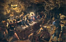 - In the Last Supper of Tintoretto, painted between 1592 and 1594 for the Church of San Giorgio Maggiore in Venice, a mysterious decorated cake appears at the end of the table. To engage the viewer, the painter decided to set the scene in a hallway that resembles a tavern of the time, wrapping everything in an extraordinary play of light and shadow.
