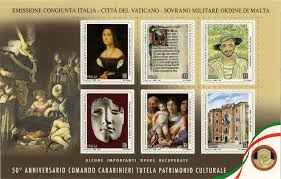 Il soprannome “Monuments Men” deriva dal film di George Clooney sulle forze alleate alla fine della seconda guerra mondiale che cercavano opere d’arte rubata dai nazisti. Il nucleo dei Carabinieri, che è chiamato Il Comando Carabinieri per la Tutela del Patrimonio Culturale (Tpc), fu fondato nel 1969. Per celebrare il cinquantesimo anniversario, l’Italia ha emesso una serie di francobolli raffiguranti opere rubate che sono state recuperate da questo comando – un per ogni decennio.