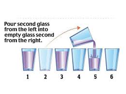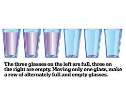 I tre bicchieri sulla sinistra sono pieni; i tre sulla destra sono vuoti. Spostando un solo bicchiere, fai una fila in cui bicchieri pieni e bicchieri vuoti si alternano.