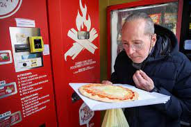 L’altra innovazione arriva da Roma, secondo quanto riportato dalla CNN. Vicino a piazza Bologna in via Catania, è sorto un nuovo distributore automatico di colore rosso brillante. Ma questo non eroga spuntini classici, bevande o altri oggetti di uso quotidiano. Produce pizza: pronta e cotta in soli tre minuti. Da “Mr. Go Pizza “, i clienti possono scegliere tra quattro tipi di pizza, che costano tra 4,50 euro e 6,00 euro: margherita, quattro formaggi, alla diavola, o con pancetta. La macchina impasta e cuoce la pizza, mentre i clienti possono osservare tutto ciò da una piccola finestra di vetro. La pizza viene poi servita in una scatola di cartone, proprio come in un ristorante da asporto.