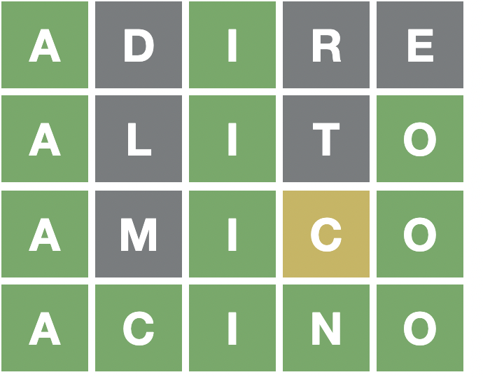 Come forse già saprai, Wordle è un gioco che ti sfida a indovinare una parola di 5 lettere. È un gioco avvincente, una volta al giorno, che ha avuto un’ascesa vertiginosa, molti imitatori e ora versioni in lingue diverse dall’inglese, incluso l’italiano, per coloro vogliano sfidare e migliorare il proprio vocabolario.